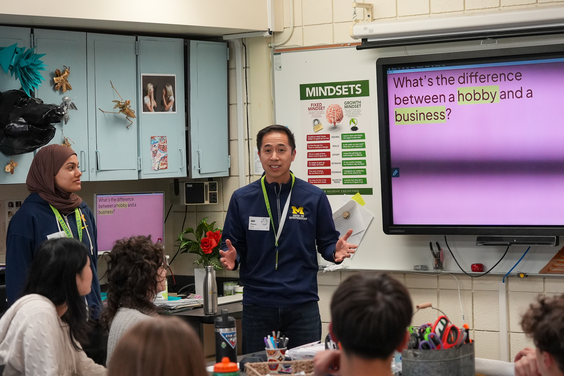 On Friday, February 27, in a packed classroom, Greenhills students were introduced to college-level entrepreneurship by Moses K. Lee, the Applebaum Innovator-in-Residence at the University of Michigan’s Ross Impact Studio. The workshop marked the beginning of a new initiative at Greenhills designed to help students develop their ideas and talents, whether artistic pursuits or the next great business concept, into real projects and ventures that can be shared with the world.